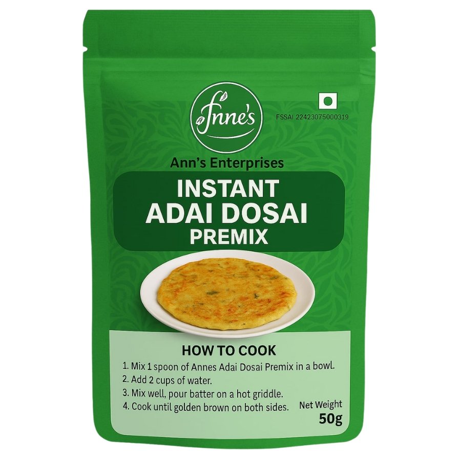 Enjoy the authentic taste of traditional South Indian breakfast with Adai Dosai Premix from Annes. Made from a nutritious blend of lentils and rice, this ready-to-cook mix brings you the perfect balance of taste and health. Rich in protein, fiber, and essential nutrients, Adai Dosai makes for a wholesome meal any time of the day. With Annes Adai Dosai Premix, you can prepare crispy, golden dosas in minutes—no soaking, grinding, or fermenting required. Just mix, pour, and cook for a deliciously satisfying experience. Ideal for busy mornings or quick dinners, it’s pure homemade goodness in every bite!