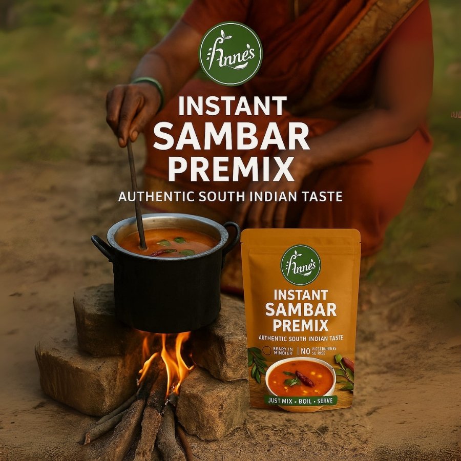 Annes Sambar Premix brings the authentic taste of South Indian cuisine straight to your kitchen. Made from a blend of premium spices and fresh ingredients, it delivers the perfect balance of aroma, flavor, and nutrition in every spoonful. Whether for a quick weekday meal or a festive feast, Annes Sambar Premix ensures consistent, restaurant-quality results every time. Simply mix with cooked vegetables and water to enjoy delicious, homestyle sambar in minutes. Free from artificial colors and preservatives, it’s the perfect choice for those who value both taste and health. Enjoy the true essence of traditional South Indian cooking with Annes.